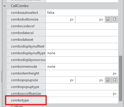 그리드 셀의 속성 중 combotype 속성을 사용하면 된다!