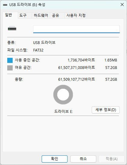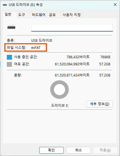 다시 속성을 확인해보면! 파일 시스템 타입이 바뀌어있다! 😁